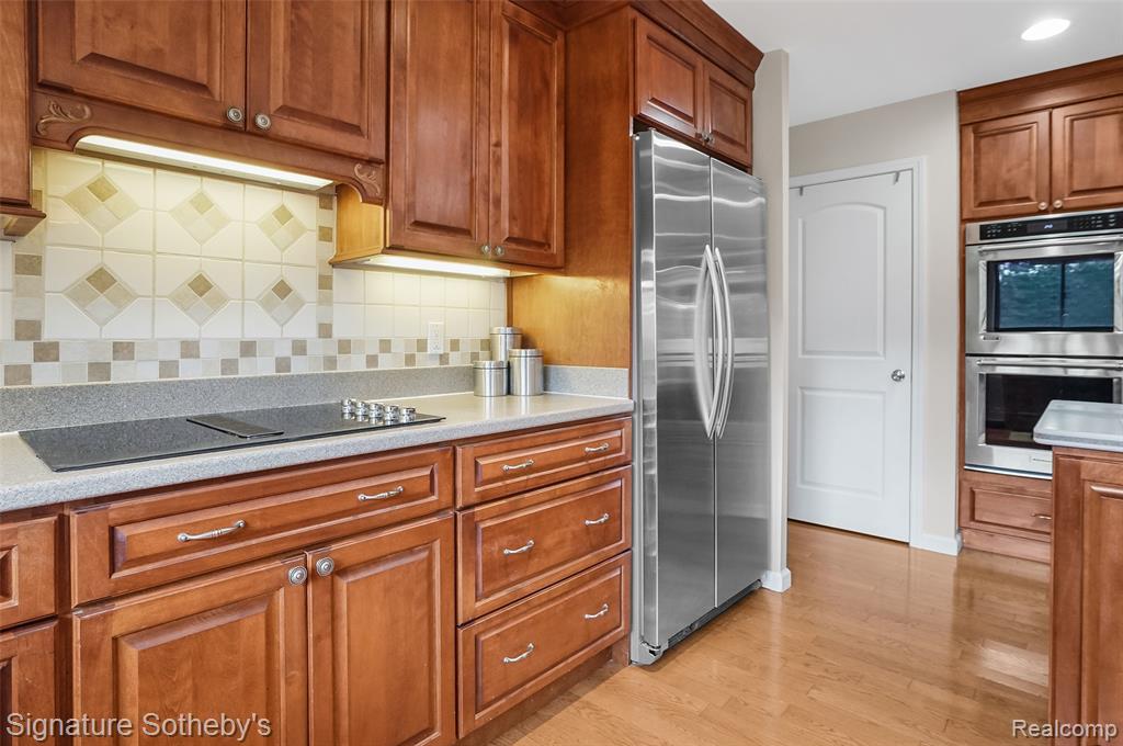 Appliances: Vented Exhaust Fan,Wine Cooler,Built-In Electric Oven,Dishwasher,Disposal,Double Oven,Dryer,Electric Cooktop,Free-Standing Refrigerator,Microwave,Self Cleaning Oven,Stainless Steel Appliance(s),Trash Compactor,Washer |