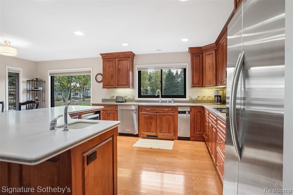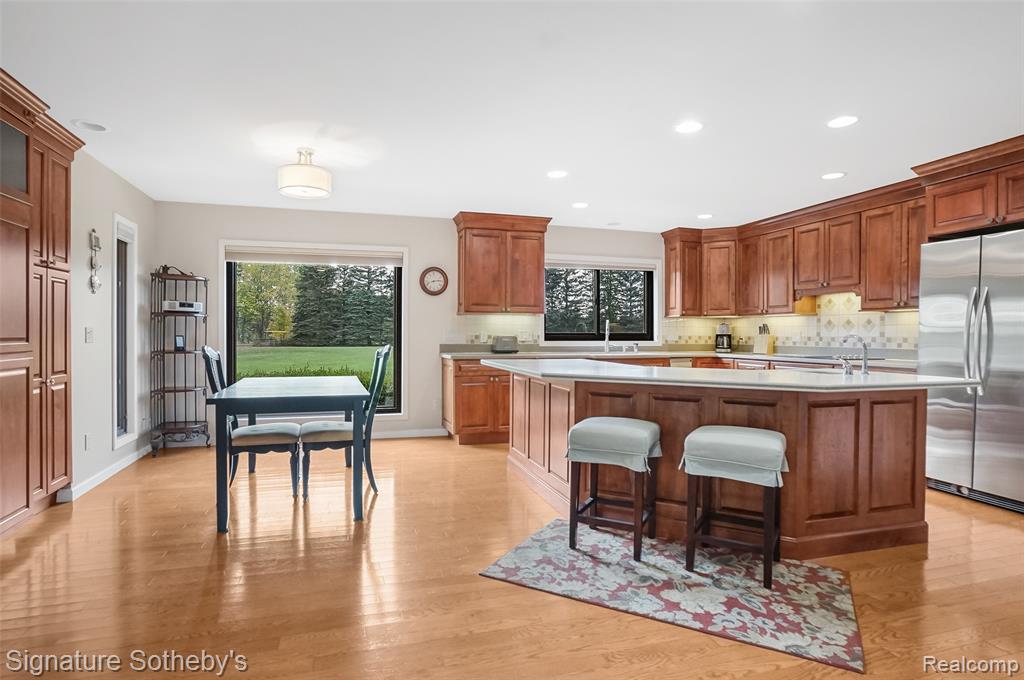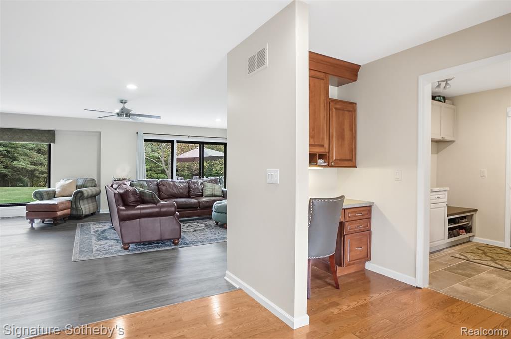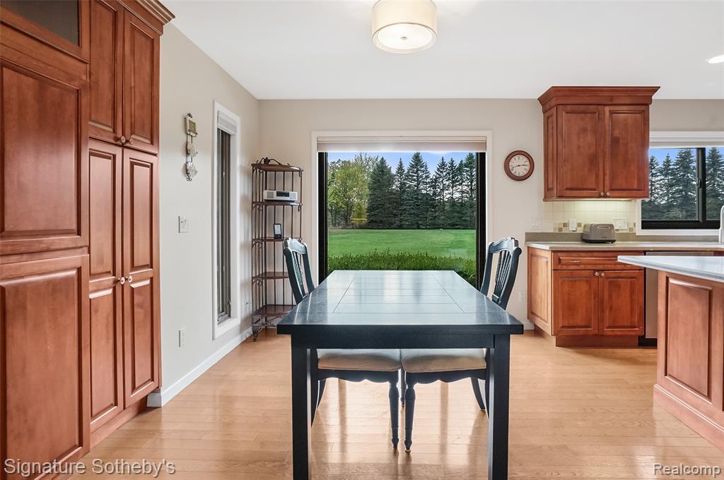 Welcome to 840 Eager Rd, a stunning, 4-bedroom, 2.1 bath all-brick ranch nestled on 9.11 picturesque acres in peaceful Oceola Twp. ~ This sprawling home offers nearly 3,000 sq ft of thoughtfully designed living space, blending timeless craftsmanship with modern updates throughout. ~ Step inside to find a beautifully and recently remodeled main bath, gutted to the studs & reimagined with exquisite tile, a soaking tub, walk-in rain shower with fold-down seat, and a gorgeous marble-topped vanity. ~ The primary suite is a true retreat, featuring a spacious bedroom filled with natural light and serene views of the side and back yard. You'll love the Closet Factory-designed walk-in closet, offering exceptional organization and style. The ample-sized en-suite showcases dual sinks, and a beautifully tiled walk-in shower, creating a perfect blend of comfort and style. ~ The interior boasts fresh paint (2024–2025) with new interior doors and hardware (2025), and Andersen windows and door walls (2017). ~ The inviting kitchen showcases maple cabinetry, a spacious island with garden sink, snack bar seating for up to seven, a wine cooler, newer stainless-steel appliances, and abundant counter space, perfect for entertaining! ~ Enjoy the warmth of the four-seasons room with wood-burning stove, overlooking tranquil views of your private acreage. ~ Additional updates include a Trex deck, mud room, laundry rm with half bath, geothermal heat pump, whole-house water filtration system, and newer hot water heater (see Seller update sheet). ~ Outdoors, you’ll find a recently painted 36'x40' (2x6 construction) pole barn with concrete floor, electricity, gas line ready for hookup, dual entry, and a convenient stock faucet well. The property also offers a possible split with 3 water and sewer taps at rd. ~ Experience the best of both worlds! Peaceful country living just minutes away from all modern conveniences with Thompson Lake privileges nearby! ~ Buyers and Agents to verify all info! |